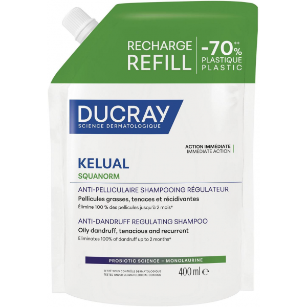 Ducray Kelual Squanorm Shampoing Régulateur Anti-Pelliculaire Recharge 400 ml