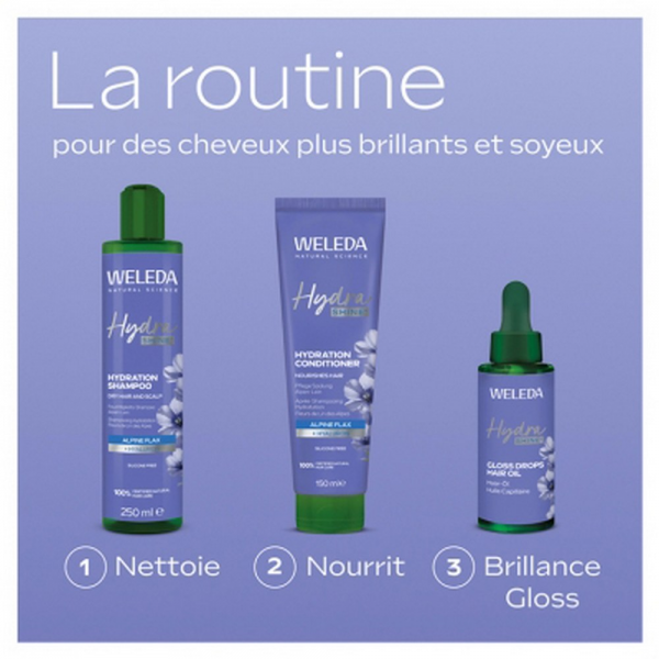 Enfin, son parfum 100 % naturel, aux notes florales et fruitées, enveloppe délicatement la chevelure, laissant une sensation de fraîcheur et de légèreté durable. Le shampooing Weleda Hydra Shine Hydratation s’impose ainsi comme un soin complet, combinant efficacité, douceur et plaisir sensoriel, pour une chevelure éclatante de santé jour après jour.
