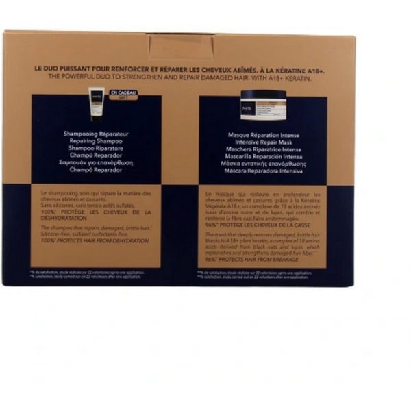 Ce duo réparateur est conçu pour redonner vie aux cheveux abîmés, secs ou cassants. Il combine l’action nourrissante du Masque Réparation Intense et le soin nettoyant du Shampoing Réparateur, pour une routine complète et hautement efficace.