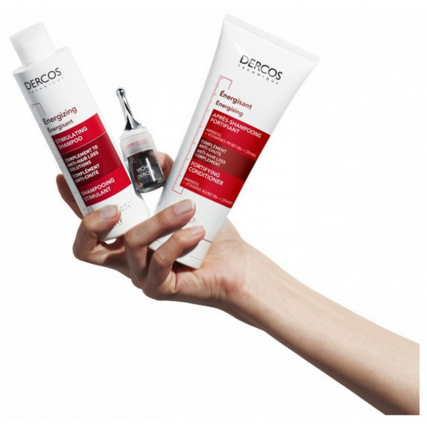 En complément, il est recommandé d'utiliser le shampooing Dercos Énergisant.
