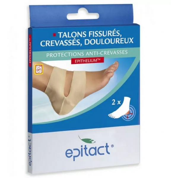 Les protections répartissent les pressions exercées sur les crevasses et soulagent la douleur lors de la marche. De plus, elles permettent une hydratation en continu du talon grâce à l’exclusivité du gel d’Epithelium. Sur des talons crevassés et douloureux, il est conseillé de porter les protections en journée.