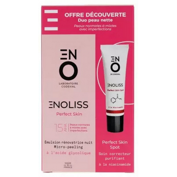 Codexial Enoliss Perfect Skin 15 AHA Émulsion Rénovatrice Nuit Micro-Peeling 30 ml + Soin Correcteur Purifiant 30 ml