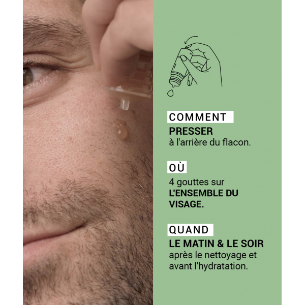 Matin et soir, sur une peau propre et sèche, appliquer 4 gouttes sur l'ensemble du visage avant votre soin hydratant.