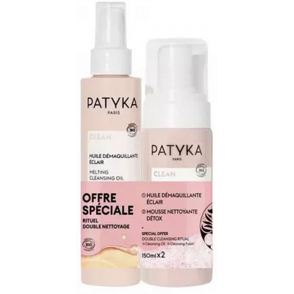PATYKA Clean Huile Démaquillante Éclair Bio 150 ml + Mousse Nettoyante Détox Bio 150 ml Offre Spéciale