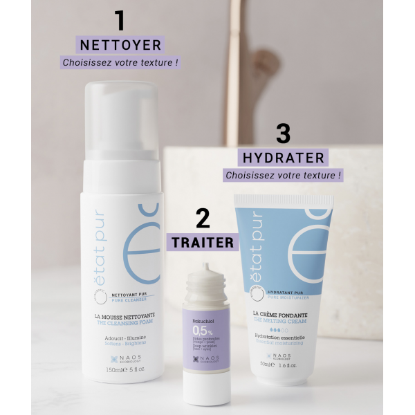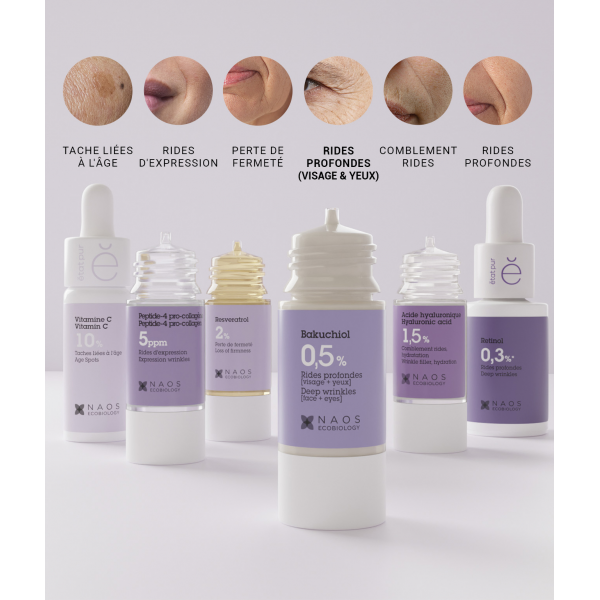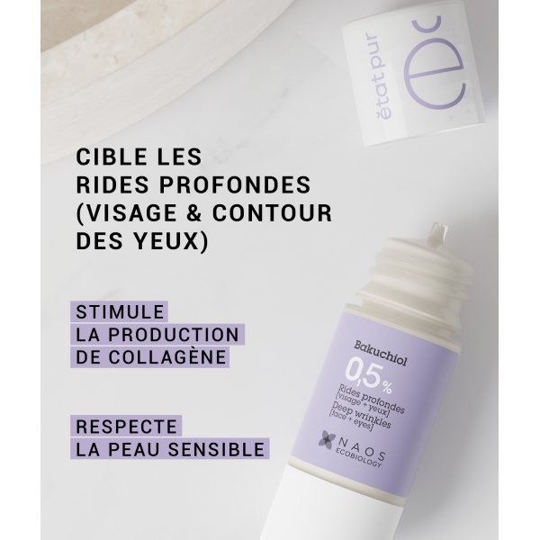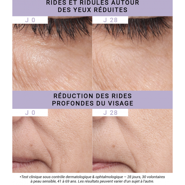 Actif Pur destiné aux rides profondes (visage + yeux). Cible les rides profondes, stimule la production de collagène et respecte la peau sensible. En savoir +