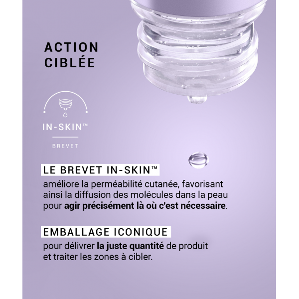 Grâce à la technologie brevetée IN-SKIN™, l’actif est diffusé de manière ciblée pour une efficacité maximale.