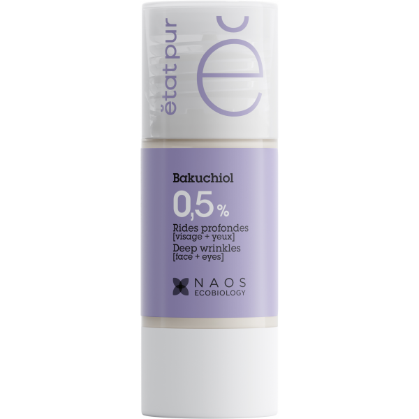 L’Actif Pur Bakuchiol 0,5 % d’État Pur est un soin anti-âge haute tolérance, idéal pour les peaux sensibles.