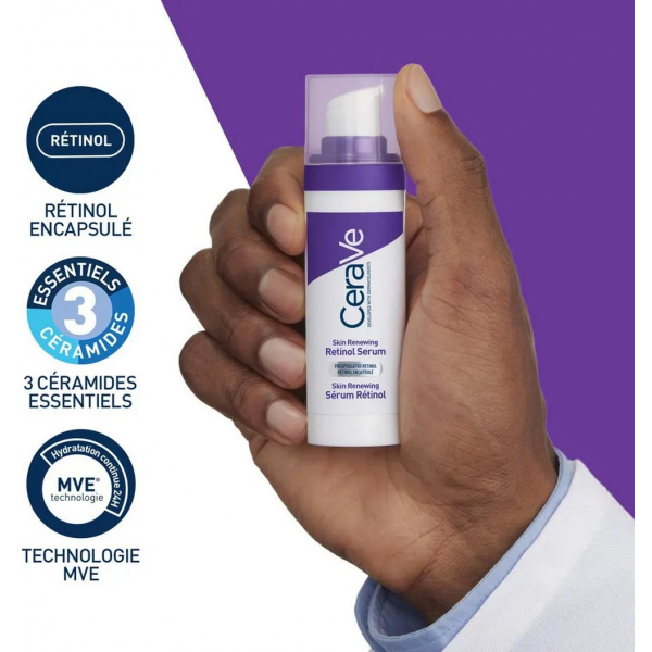 Grâce à la technologie MVE (MultiVesicular Emulsion), les actifs sont libérés progressivement, assurant une hydratation continue pendant 24 heures et un effet durable sur la barrière cutanée. Des tests cliniques ont montré qu’en seulement deux semaines, la peau devient visiblement plus lisse, plus éclatante et souple, avec un grain de peau affiné et des pores resserrés. Le sérum Rétinol Skin Renewing CeraVe est ainsi un allié efficace pour prévenir et atténuer les premiers signes de l’âge tout en apportant confort et protection à la peau.