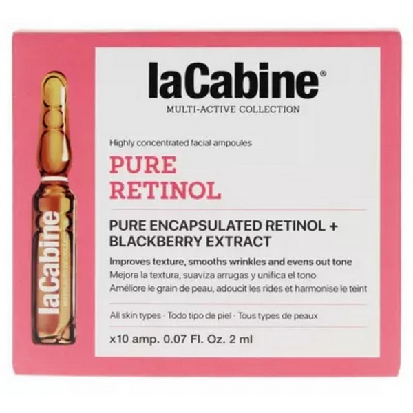 Les ampoules LACABINE- RETINOL PURE sont des soins concentrés à base de rétinol pur encapsulé, spécialement conçus pour les peaux éprouvées. Grâce à sa formule avancée, le rétinol pur agit efficacement pour atténuer les signes de vieillissement cutané, réduire les rides, les pores dilatés et estomper les taches de la peau. En stimulant la production naturelle de collagène et d'acide hyaluronique, il contribue à améliorer la fermeté, l'élasticité et la texture de la peau. Sa capacité à pénétrer en profondeur dans les couches de l'épiderme offre une efficacité accrue tout en minimisant les éventuels problèmes d'irritation.