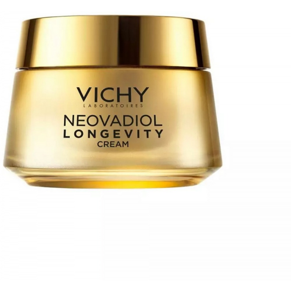 Appliquez uniformément la Crème Neovadiol Longevity Vichy sur la peau propre de l'ensemble du visage et du cou, matin et/ou soir.