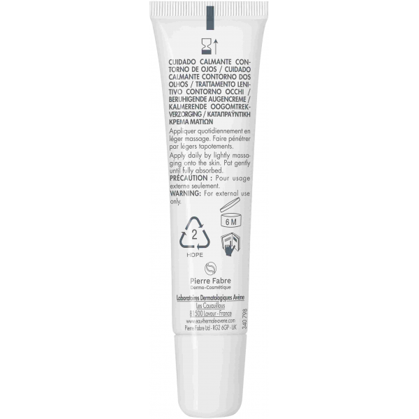 Sa formule associe le bisabolol, reconnu pour ses propriétés calmantes, au sulfate de dextran qui contribue à réduire les signes de fatigue et les cernes d’origine vasculaire ou pigmentaire. L’huile de graine de carthame aide à renforcer la barrière cutanée et à limiter les tiraillements, tandis que l’eau thermale d’Avène, naturellement apaisante, participe à diminuer les irritations et à améliorer la tolérance cutanée. Sans parfum, ce soin respecte la sensibilité du contour de l’œil.