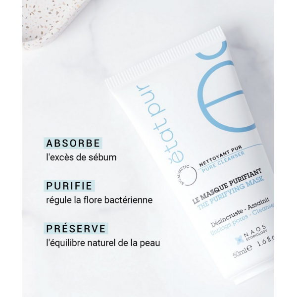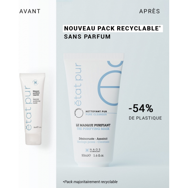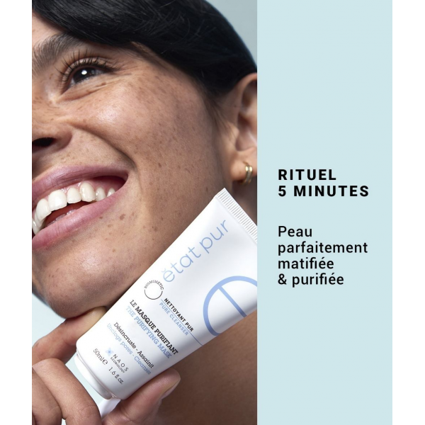 Spécialement formulé pour les peaux grasses, mixtes et sensibles, le masque purifiant expresse Etat pur est enrichi en kaolin, une argile blanche qui va absorber l’excès de sébum et favoriser l’élimination des impuretés.