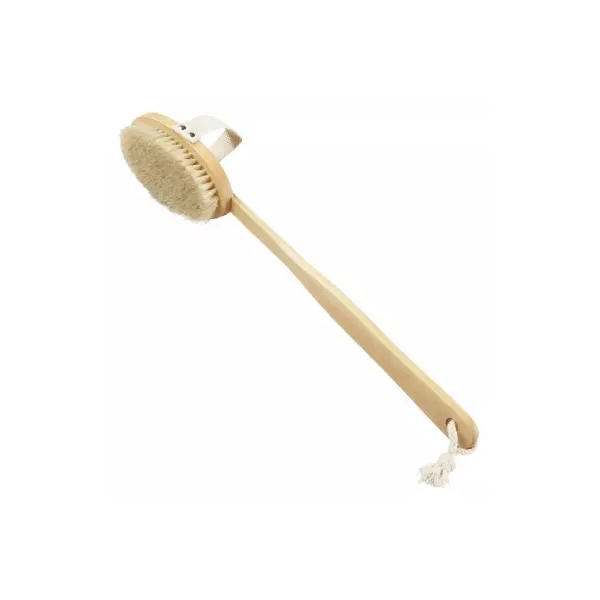 Cette brosse de bain vous offre une expérience luxueuse et apaisante grâce à ses poils en soies naturelles. Les bénéfices des poils en soies naturelles incluent un massage doux de la peau, une exfoliation efficace et une stimulation de la circulation sanguine. De plus, le manche démontable en bois facilite le nettoyage de la brosse pour une hygiène optimale.