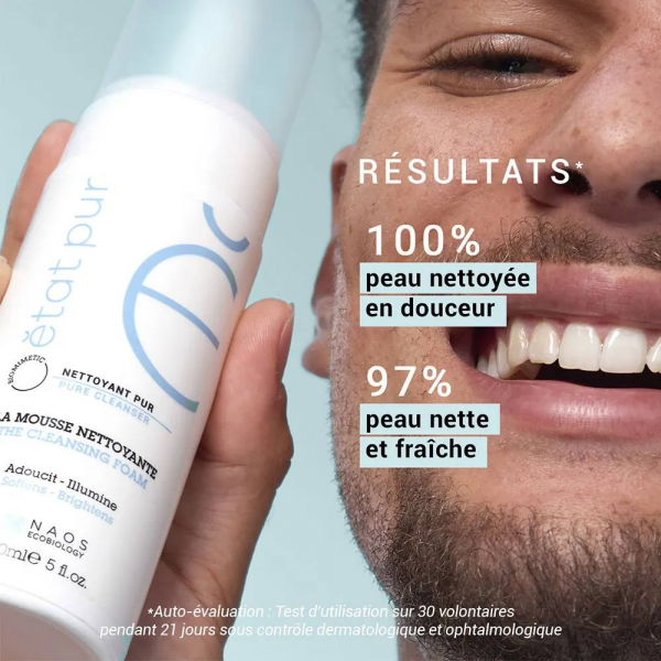 Pour nettoyer votre peau en douceur, la mousse nettoyante Etat pur renferme une formule biomimétique au pH neutre pour éliminer les impuretés, la pollution et le maquillage accumulés tout au long de la journée sur votre peau.