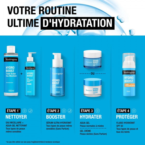 Le Neutrogena Hydro Boost Nettoyant Aqua-Gel Hydratant 200 ml révolutionne la routine de soin du visage avec sa formule unique en gel, conçue pour s'activer au contact de l'eau. Ce nettoyant innovant élimine efficacement les impuretés, les traces de maquillage, et l'excès de sébum sans laisser de résidus, assurant un nettoyage profond tout en douceur. Grâce à l'inclusion d'agents hydratants et de l'acide hyaluronique, un puissant hydratant naturel connu pour sa capacité à retenir l'eau, il offre une hydratation optimale. Ce nettoyant ne se contente pas de purifier la peau ; il contribue également à renforcer la barrière cutanée, laissant la peau fraîche, claire et d'une souplesse incomparable au toucher.