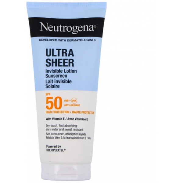 Grâce à la technologie Helioplex, Neutrogena Ultra Sheer Lait Hydratant Invisible SPF50 vous offre une protection à large spectre contre les rayons solaires et la pollution !