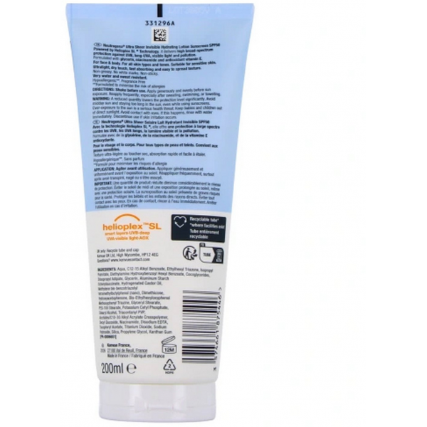 Neutrogena Ultra Sheer Lait Invisible Solaire SPF50 200 ml