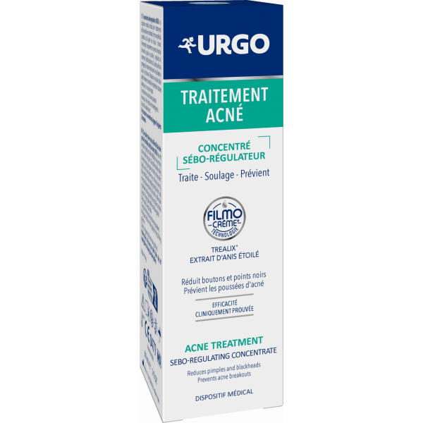 Soin sébo-régulateur Urgo sous forme de concentré conçu pour les peaux à tendance acnéique, qui aide à réduire les boutons, points noirs et excès de sébum tout en limitant leur réapparition, pour une peau plus nette et équilibrée. En savoir +