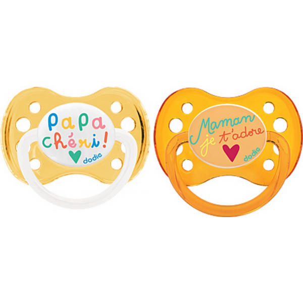 Cette sucette réversible en silicone possède un bouclier aéré qui évite les irritations. Sans bisphénol A.Mmodèle Maman Je t'adore Orange translucide. En savoir +