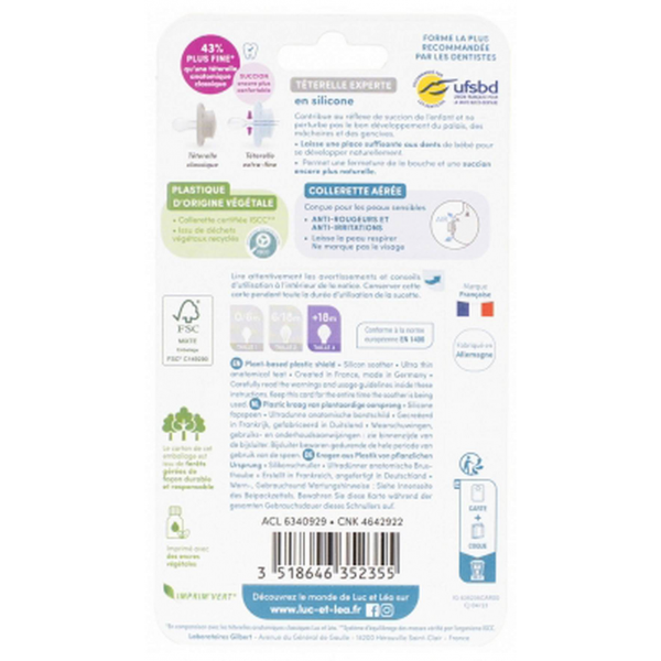Luc et Léa Nature 2 Sucettes Anatomiques Téterelle Extra-Fine 18+ Mois