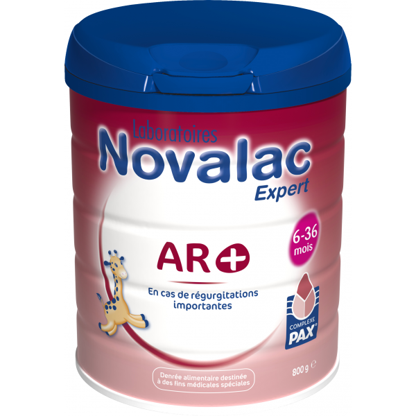 Novalac AR + est un lait infantile épaissit à la caroube et à l'amidon. Il répond aux besoins nutritionnels de croissance des enfants de 6 à 36 mois et diminue les régurgitations importantes.