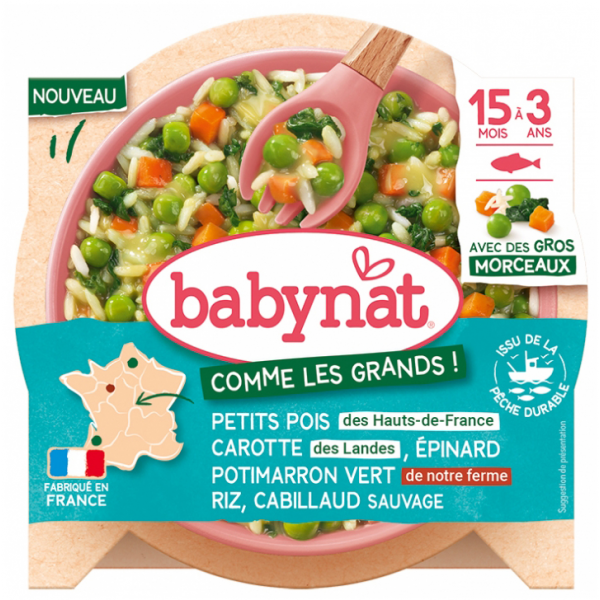 Babybio Babynat Petits Pois Carotte Épinard Potimarron Vert Riz & Cabillaud Sauvage de 15 Mois à 3 Ans 200 g