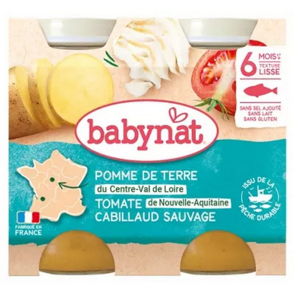 Babybio Babynat Pomme de Terre Tomate Cabillaud Sauvage 6 Mois et + Pots 200 g x 2