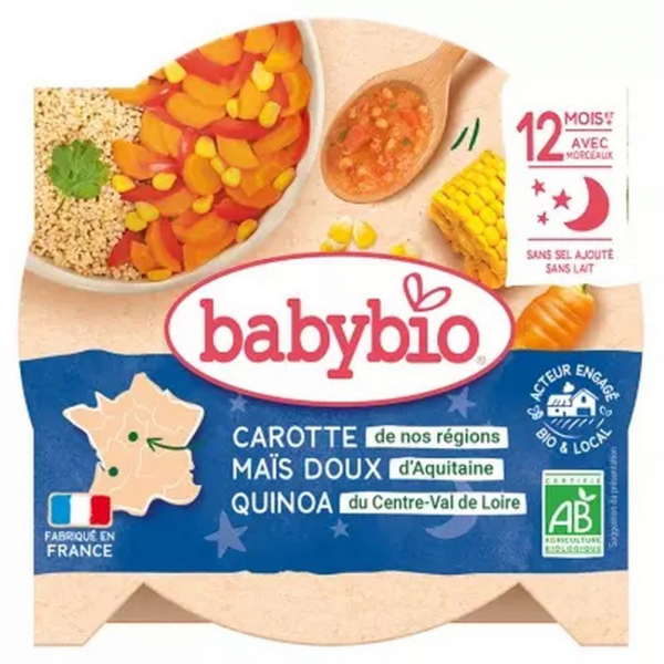 Babybio Bonne Nuit Fondue de Carotte Mais Doux Quinoa 12 Mois et + Bio 230 g