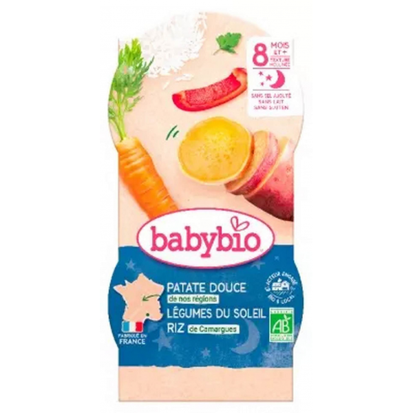Babybio Bonne Nuit Patate Douce Légumes du Soleil Riz 8 Mois et + Bio 2 Bols de 200 g