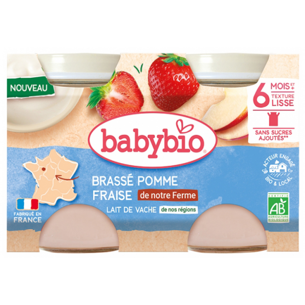 Babybio Brassé Pomme Fraise Lait de Vache 6 Mois et + Bio Pots 130 g x 2