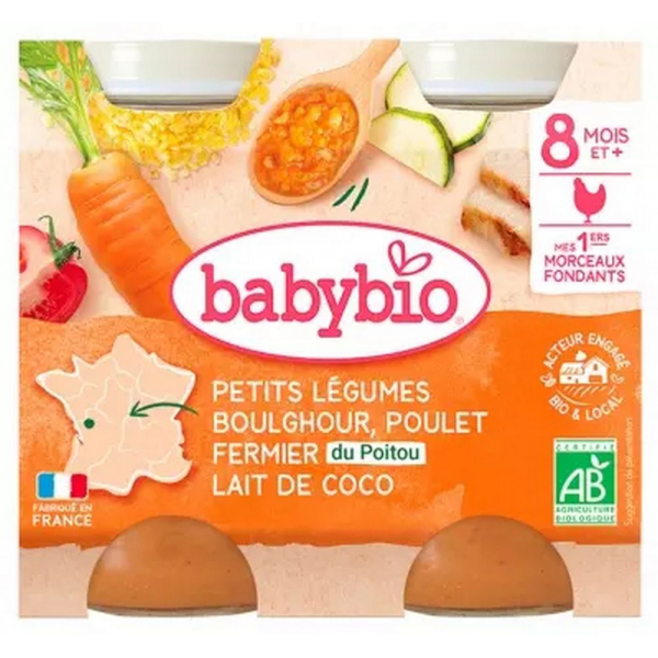 Babybio Petits Légumes Boulghour Poulet Fermier Lait de Coco 8 Mois et + Bio Pots 200 g x 2