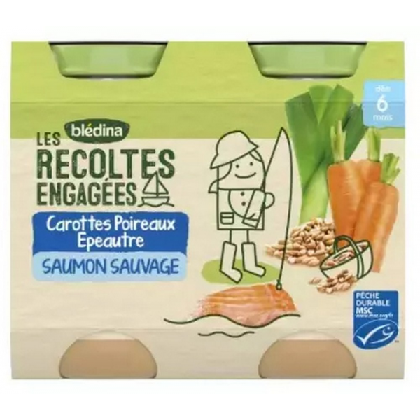 Blédina Les Récoltes Engagées Carottes Poireaux Epeautre Saumon Sauvage des 6 Mois Pots x 2