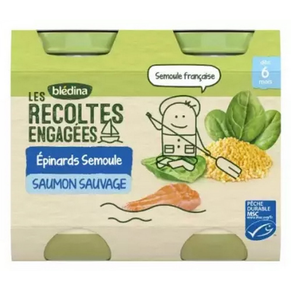 Blédina Les Récoltes Engagées Épinards Semoule Saumon Sauvage des 6 Mois Pots x 2