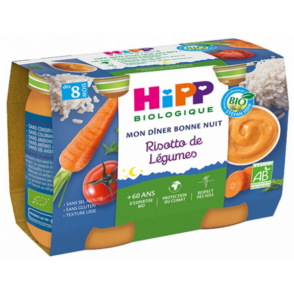 HiPP Mon Dîner Bonne Nuit Risotto de Légumes dès 8 Mois Bio Pots x 2