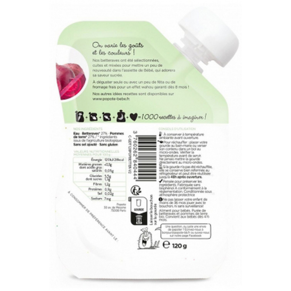 Popote Gourde La Betterave Purée des 4/6 Mois Bio 120 g