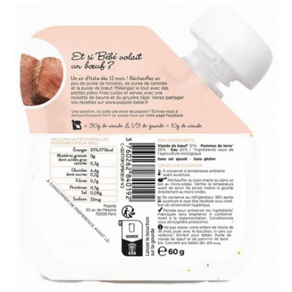 Popote Gourde Le Bœuf Purée des 4/6 Mois Bio 60 g