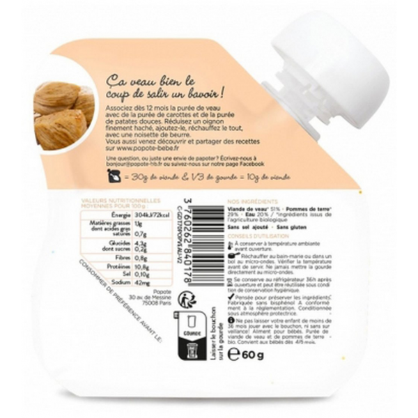 Popote Gourde Le Veau Purée des 4/6 Mois Bio 60 g