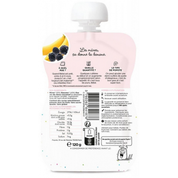 Popote Gourde Les Prunes & La Poire Compote des 4/6 Mois Bio 120 g