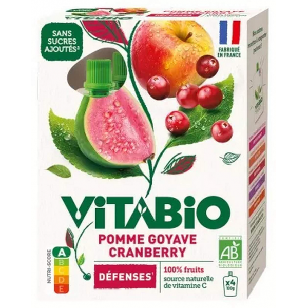 Pomme de France* 69% mangue* 20% jus de citron vert* 6% acérola* 5%.