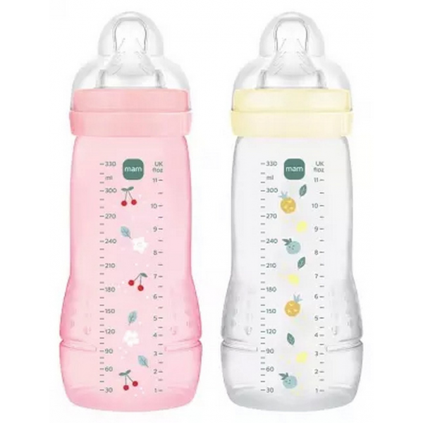 MAM Easy Active 2 Biberons 2eme Âge 330 ml 6 Mois et + Débit Tres Rapide
