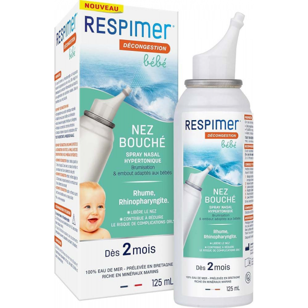 Le spray nasal Respimer Bébé offre une solution douce et efficace pour aider les tout-petits à respirer librement dès 15 jours. Grâce à sa formule naturelle à base d’eau de mer de la baie de Saint-Malo, riche en minéraux et oligo-éléments, il aide à éliminer le mucus, les bactéries et les virus, tout en apaisant les symptômes liés au nez bouché ou qui coule. Pratique et sûr, ce spray peut être utilisé quotidiennement, en complément de traitements médicamenteux nasaux ou seul pour l’hygiène régulière. Il est particulièrement utile lors des rhumes, nez bouché, nez qui coule ou en cas de bronchiolite. Son action douce permet de nettoyer efficacement les voies nasales, facilitant ainsi la respiration et le confort respiratoire des bébés et nourrissons. L’embout ergonomique et confortable assure une utilisation sécurisée, même avec les plus petits, tandis que la brumisation légère adapte le flux d’eau de mer au nez délicat des bébés. Le spray fonctionne dans toutes les positions et permet un nettoyage rapide et efficace. Un geste simple pour protéger et soulager le nez des nourrissons tout en favorisant une respiration plus facile et un meilleur bien-être au quotidien.