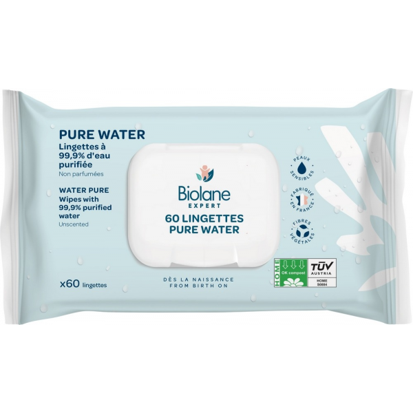Biolane Pure Water Lingettes non Parfumées Lingettes x 60