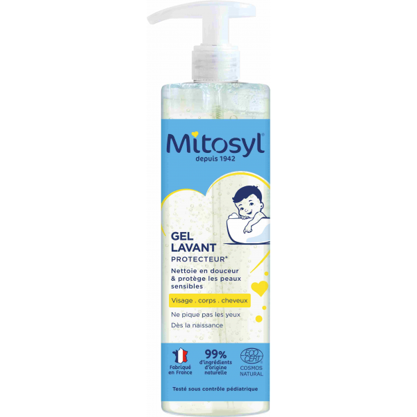 Le Mitosyl Gel Lavant Bébé et Enfant 490 ml est spécialement conçu pour nettoyer en douceur la peau sensible du visage et du corps, ainsi que les cheveux délicats des bébés et des enfants, dès la naissance. En savoir +