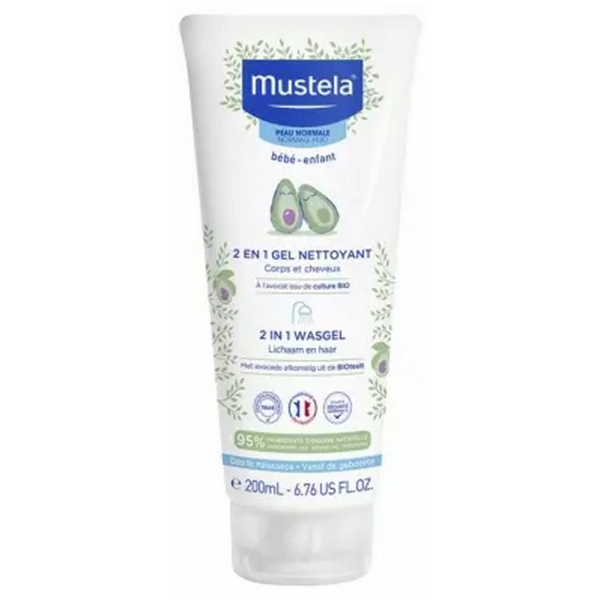 Mustela 2 en 1 gel nettoyant lave efficacement et en douceur le corps et les cheveux de votre bébé. Sa formule à l'avocat bio renforce la barrière cutanée et protège le capital cellulaire de sa peau. Associé à la glycérine végétale qui hydrate, et à des tensio actifs doux qui permettent de nettoyer en douceur et d'éviter le dessèchement de sa peau. Ce gel ne pique pas les yeux !