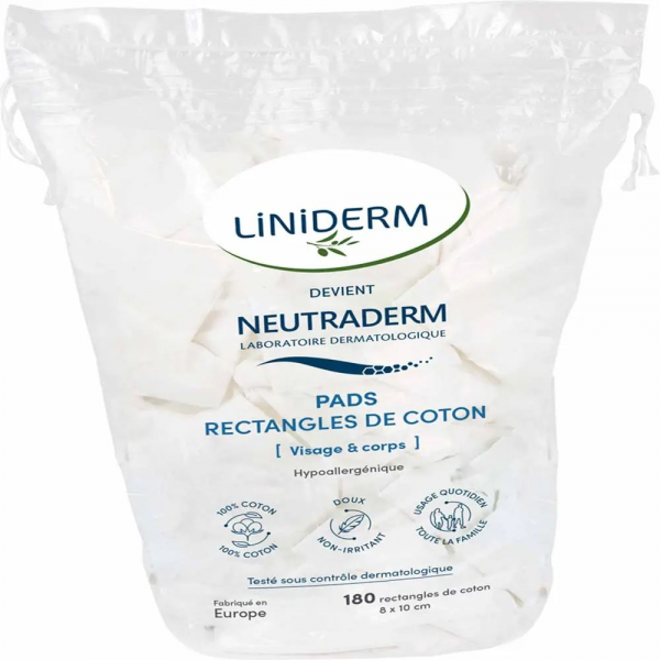 180 rectangles de coton composés à 100% de coton d'origine naturelle. Ils sont doux, hypoallergéniques et non irritants. En savoir +