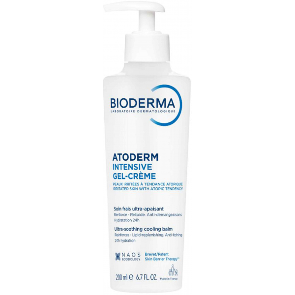 Bioderma Atoderm Intensive Gel-Crème Soin Frais Ultra-Apaisant 200 ml est un gel aux actifs nourrissants. La vitamine PP renforce la barrière cutanée et aide à relipider les tissus cutanées. Les dérivés d'enoxolone soulagent les sensations de grattage et apaisent la peau. Le complexe breveté "Skin Barrier Therapy" contribue à limiter l'adhésion de bactéries à la surface de la peau.