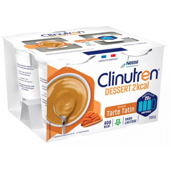 Le Dessert HP/HC+ Saveur Tarte Tatin Clinutren est spécialement formulé pour répondre aux besoins nutritionnels des patients adultes en cas de dénutrition.