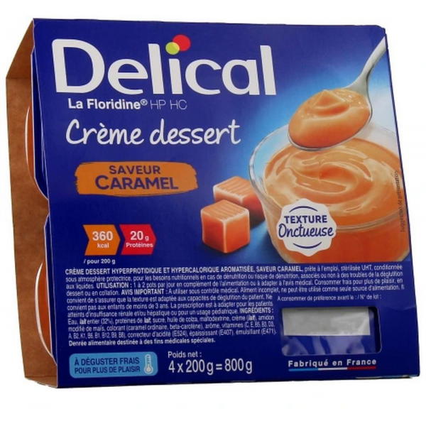 La crème dessert Delical saveur Caramel est une solution nutritionnelle prête à l’emploi, spécialement conçue pour accompagner les personnes en situation de dénutrition protéino-énergétique. Elle est particulièrement adaptée aux personnes âgées ainsi qu’aux patients atteints de maladies chroniques, lorsque les apports alimentaires habituels deviennent insuffisants. Sa texture lisse et onctueuse facilite la prise au quotidien, même en cas de fatigue ou de difficultés alimentaires.