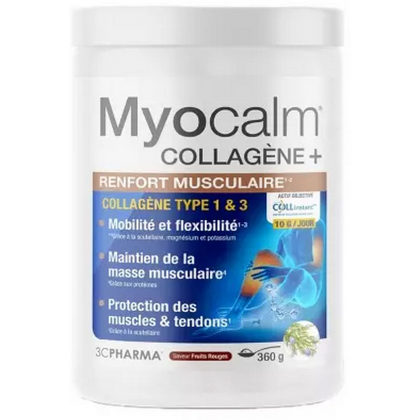 3C Pharma Myocalm Collagène + Renforcement Musculaire 360 g est un complément alimentaire qui agit sur le renfort musculaire. En savoir +