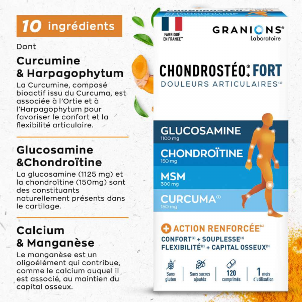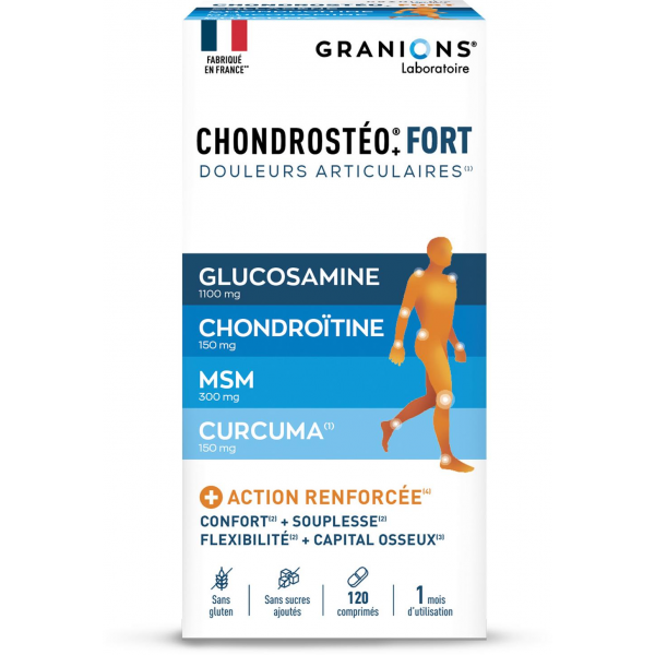 Le Laboratoire des GRANIONS® a associé les meilleurs ingrédients pour élaborer une formule qui va agir au coeur de vos articulations. CHONDROSTÉO+® FORT vous offre une action ultra renforcée grâce à ... En savoir +